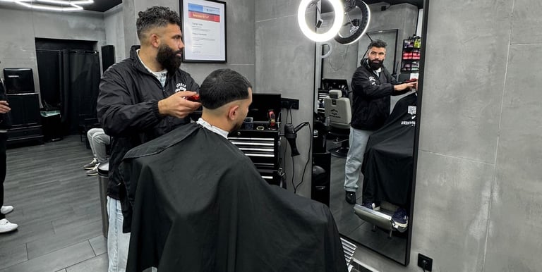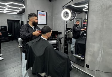 Ein präziser Haarschnitt mit entspannender Haarwäsche, Bartpflege und individuellem Styling – für deinen perfekten Look von Kopf bis Bart.